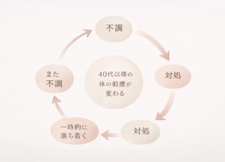 40代以降のフェムゾーン不調は、 「一度治して終わり」にならない、いわば「いたちごっこ」なのが特徴です。