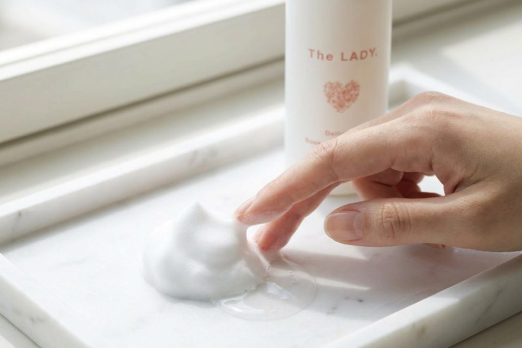The LADY.のソープは柔らかな泡で出て、すぐに美容化粧水状(液状)に変わります。美容化粧水を塗るようにして洗います。